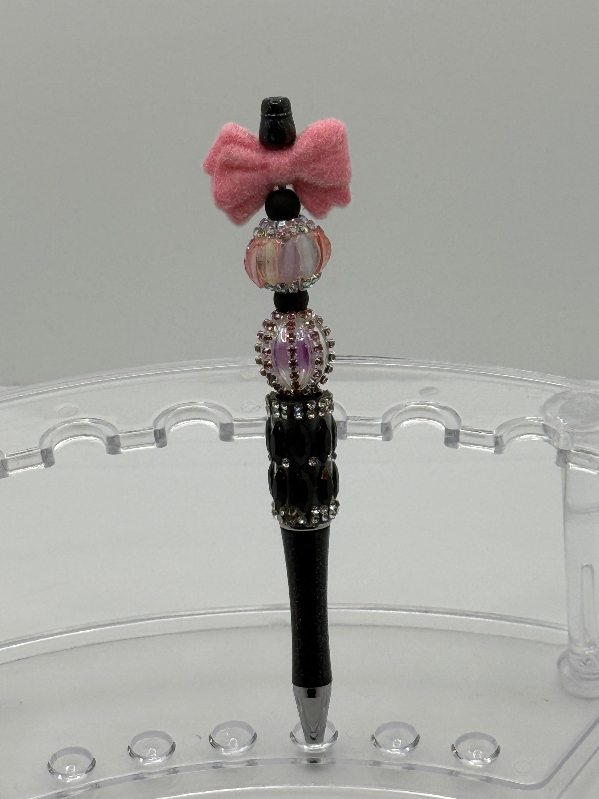 This pink and black beaded pen with a charming bow is a stylish and functional addition to your stationery collection. Its refillable black ink ensures long-lasting use, while its eye-catching design adds a touch of elegance to any writing task. Perfect for the fashion-forward professional. Comes with a free black ink refill