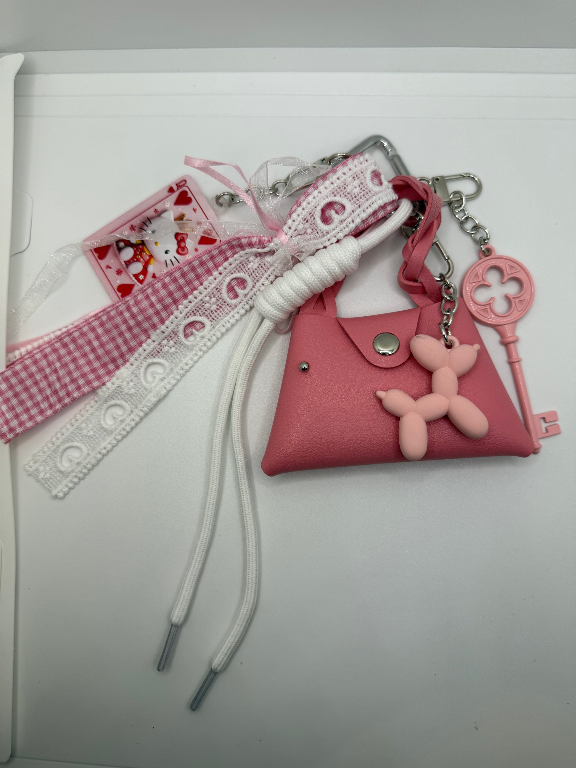 Add a touch of whimsy to your handbag with our Pink Handbag Charm featuring an adorable balloon dog and a mini purse for storing small items. Made to stand out, this charm is perfect for any fashion-forward individual.