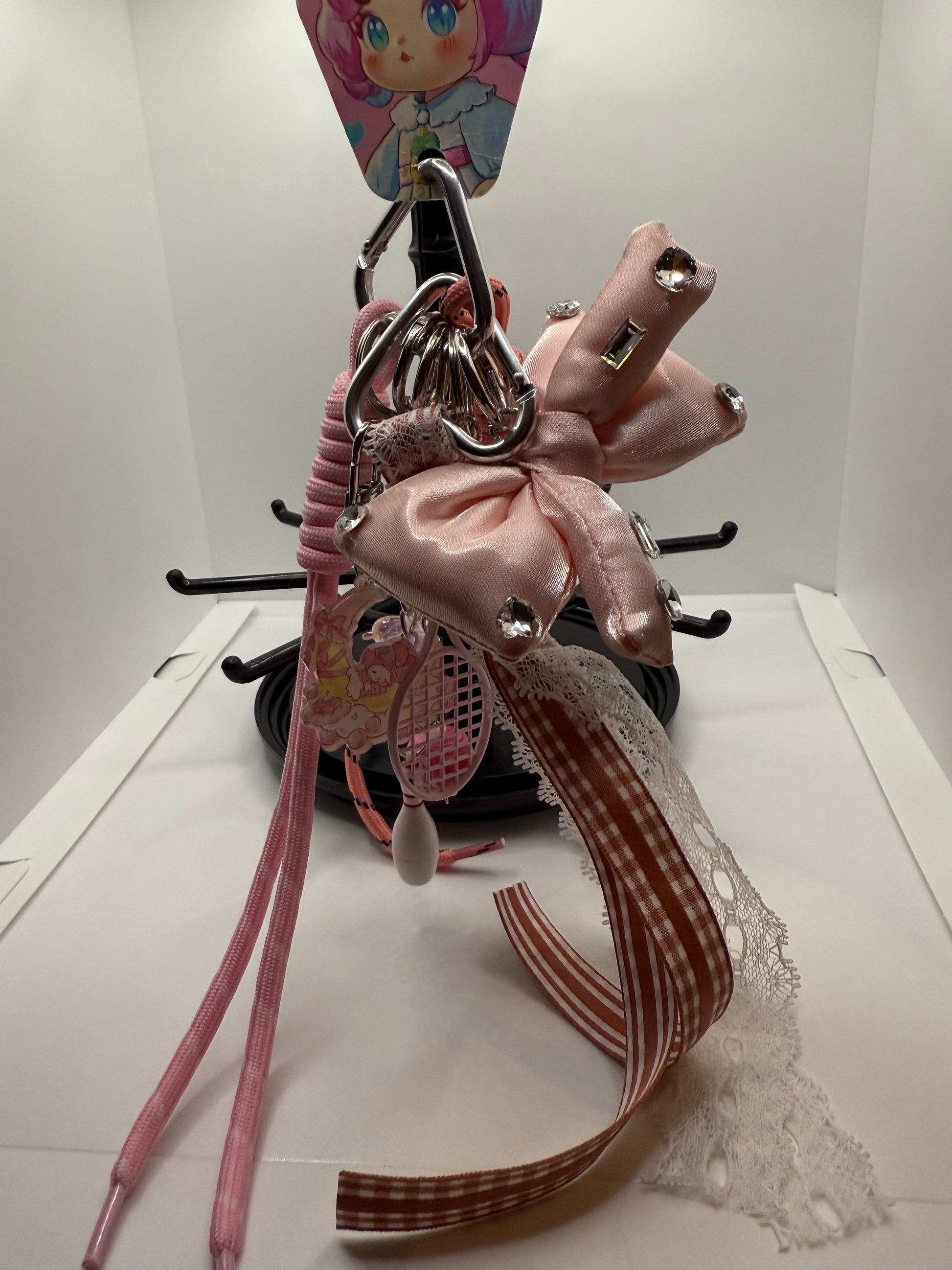 Add a unique touch to your handbag, phone, or keychain with our Pink Studded Bow Handbag Charm. With its cute charms and studded design, it's the perfect accessory to showcase your style. Made with high-quality materials, it's a must-have for any fashion enthusiast.