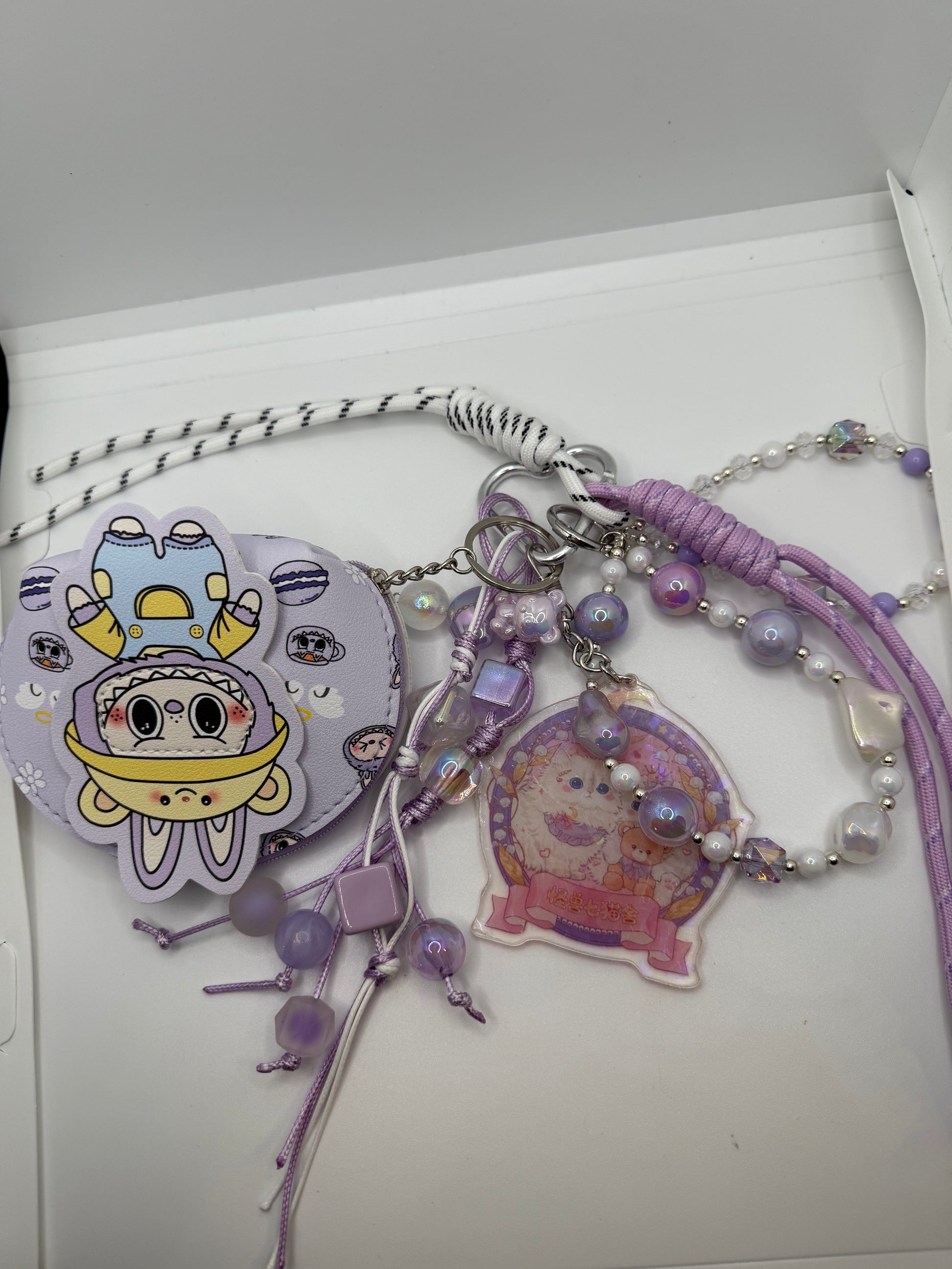 This Purple Labubu handbag charm is both stylish and functional. The attached zipper pouch allows you to conveniently carry small essentials with you on the go. Made with high-quality materials, it is the perfect accessory to add to your handbag.