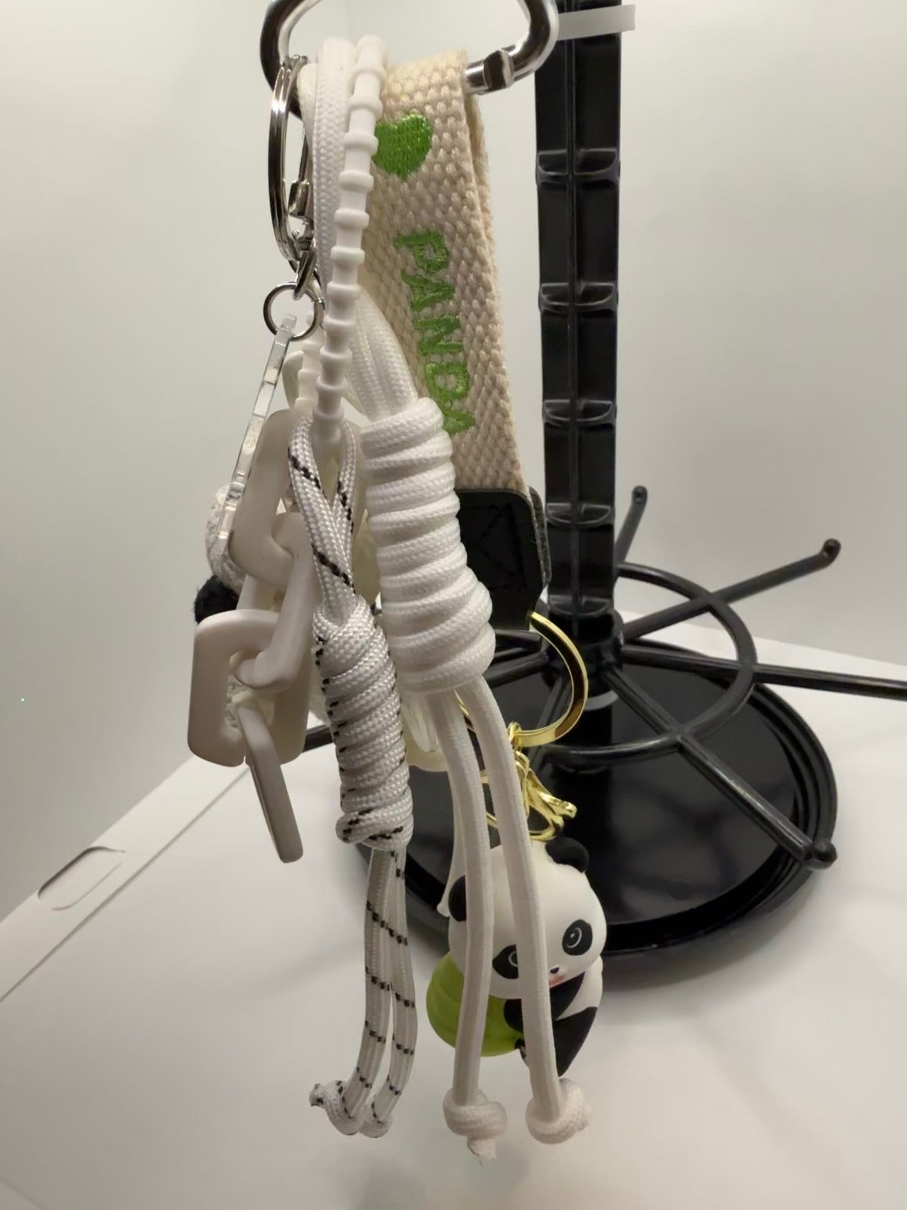 White panda handbag charm This handbag charm features a cute and playful white panda, adding a touch of charm to your bag. Made from high-quality materials, this accessory is both durable and stylish. Bring some fun and personality to your fashion with the White Panda Handbag Charm.